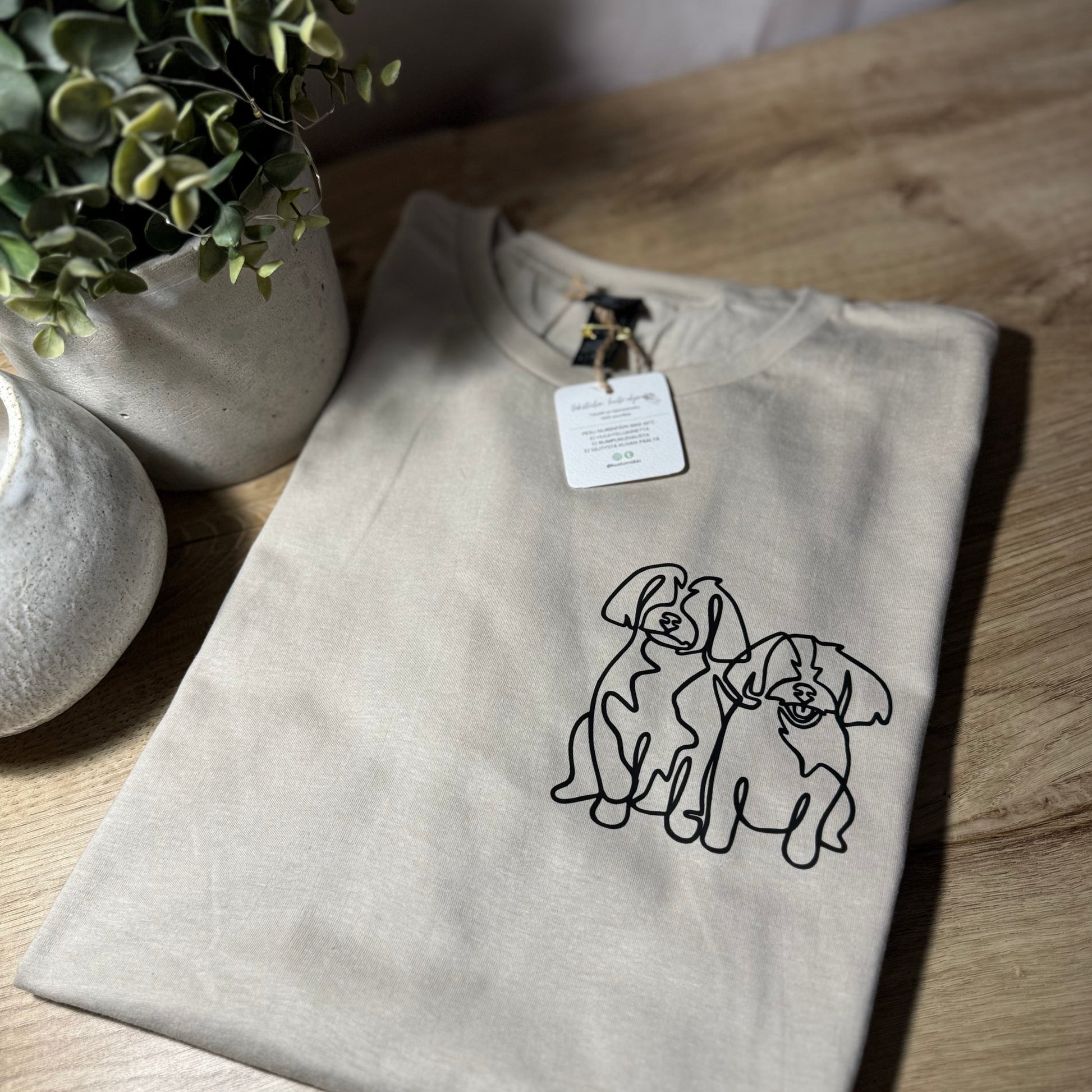 Unisex t-paita käsinpiirretyllä one line kuvalla omasta kuvastasi. Kuvassa voi olla ihmisiä/eläimiä.