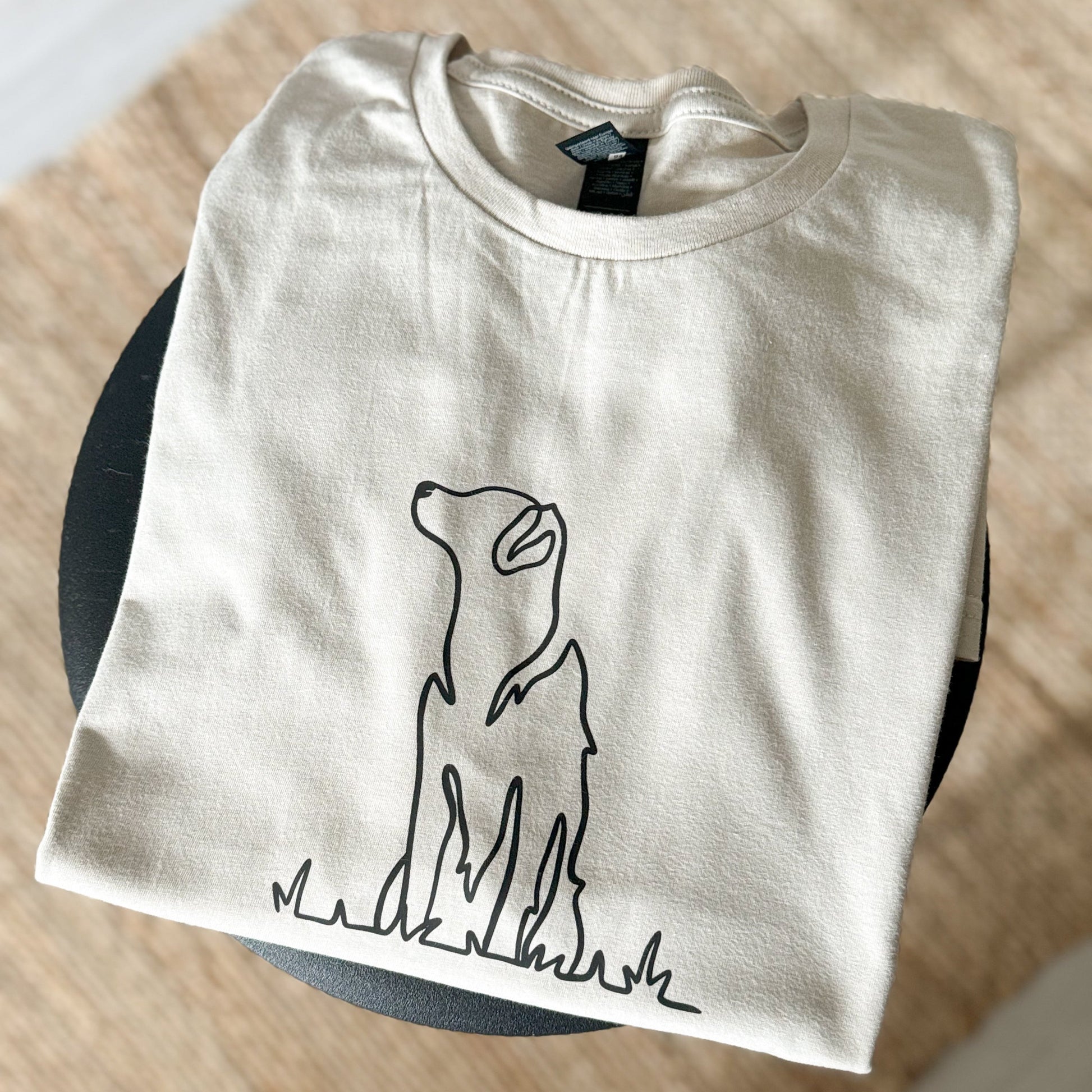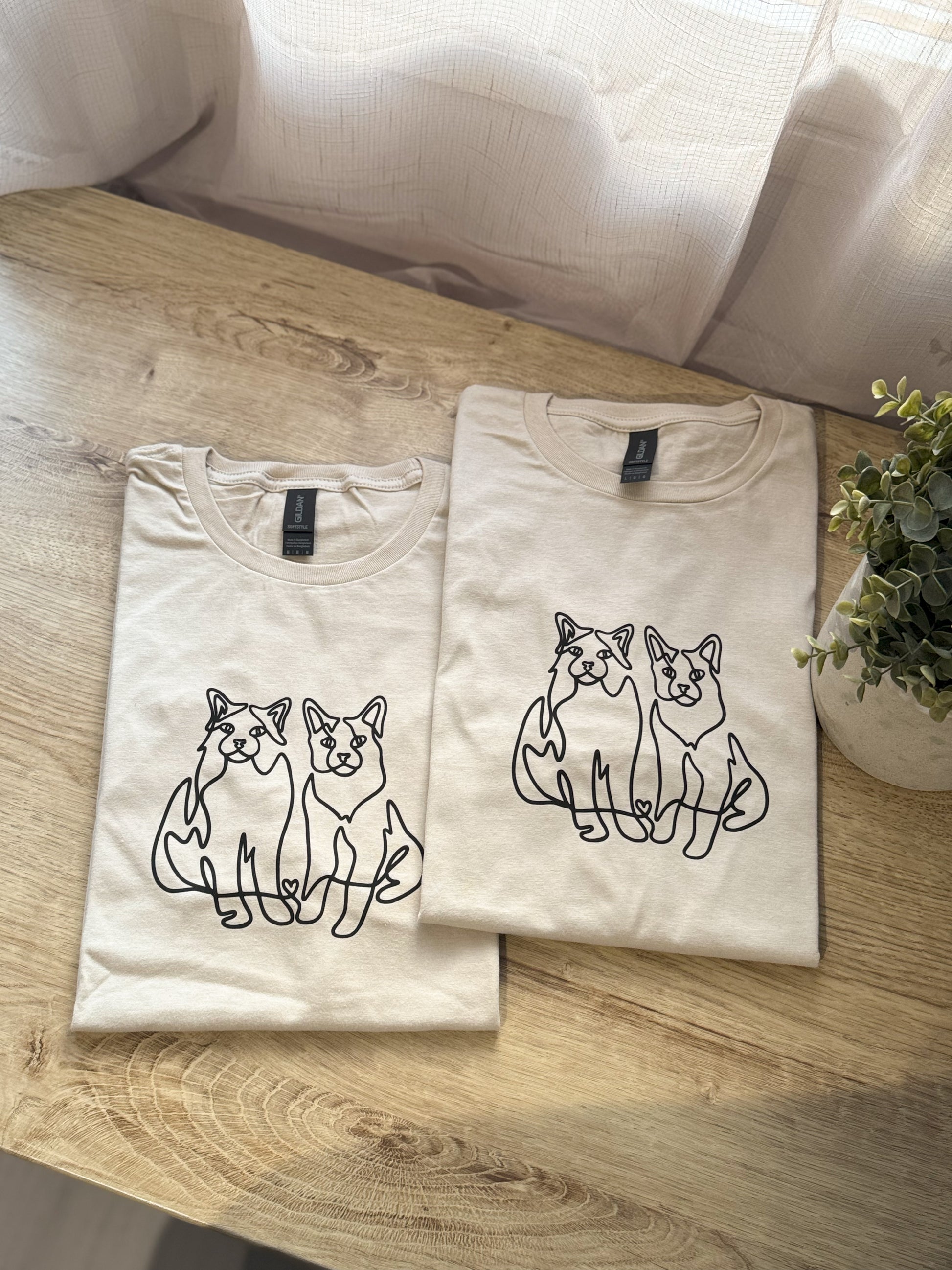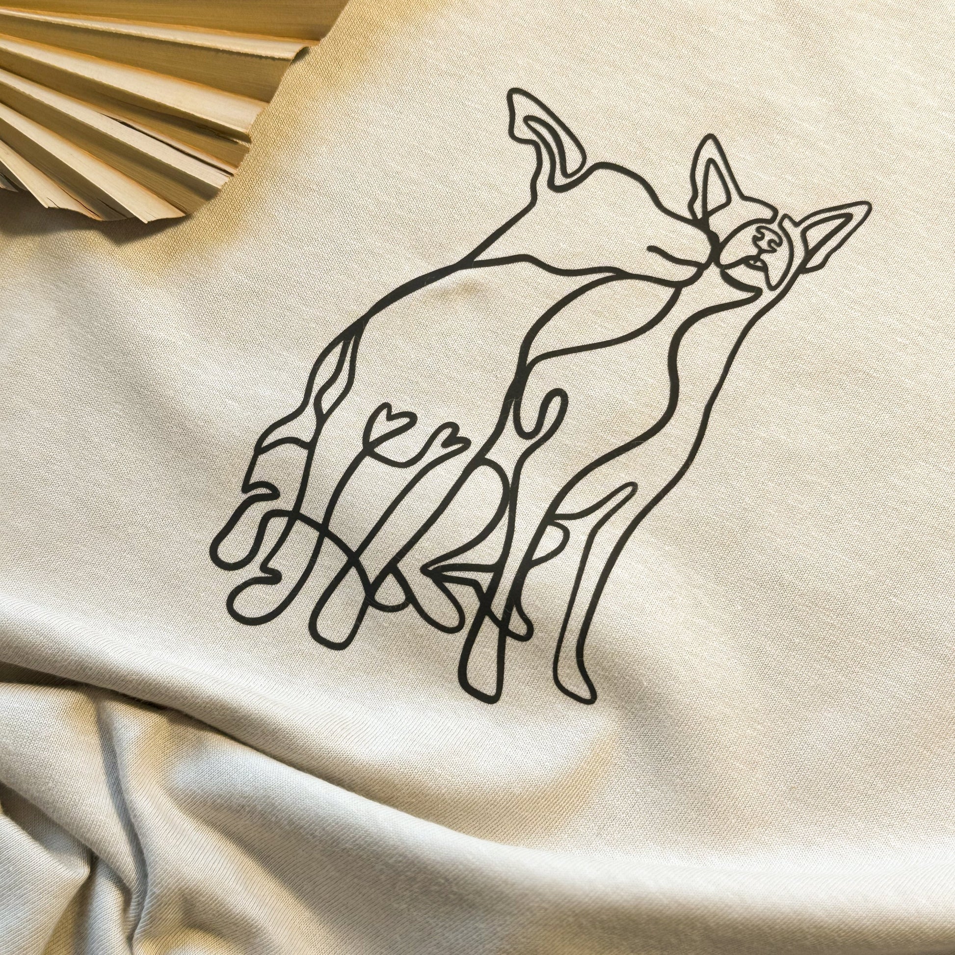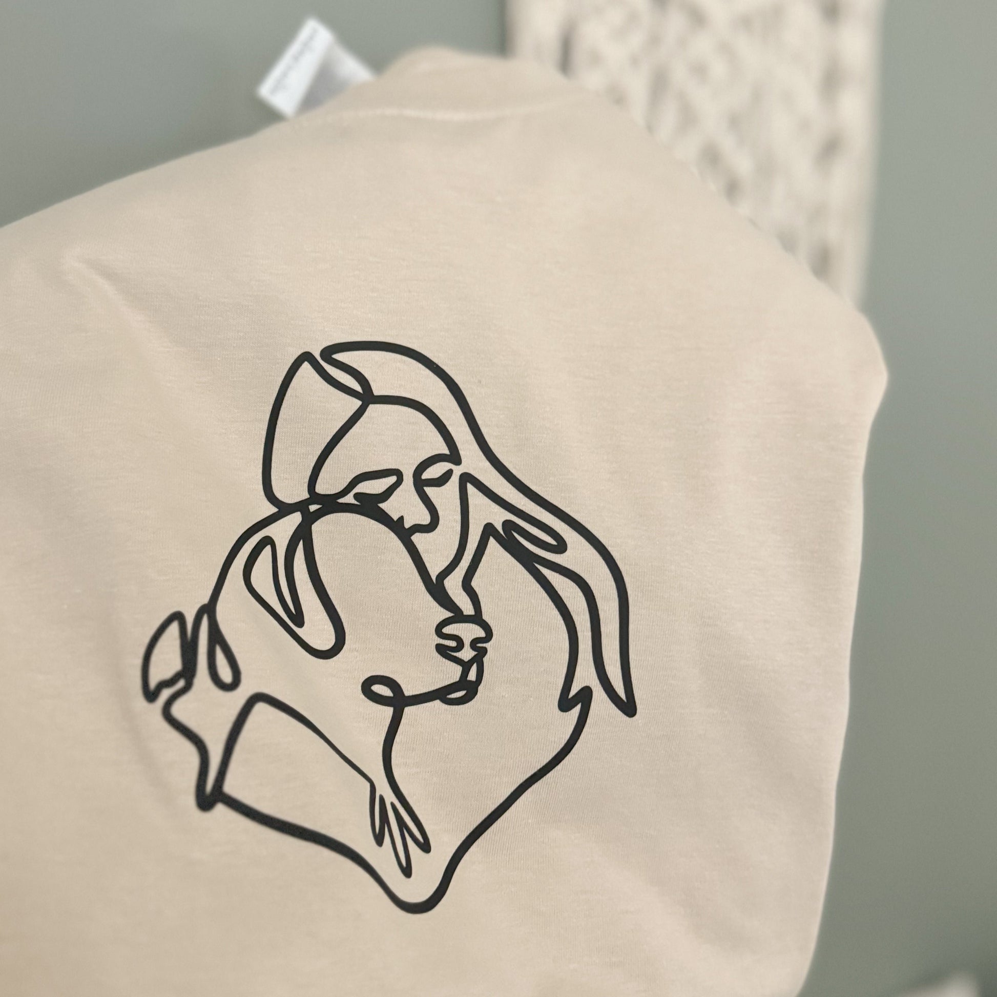 Unisex T-paita käsinpiirretyllä one line kuvalla omasta kuvastasi. Kuvassa voi olla ihmisiä/eläimiä.