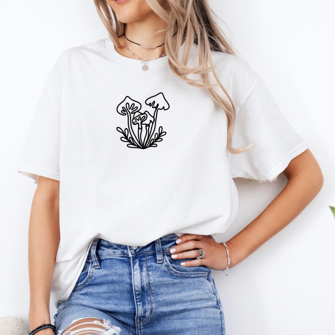 Unisex T-paita käsinpiirretyllä one line kuvalla.